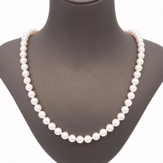 真珠の魅力を最大限に生かした気品溢れる輝きを放つ「パールネックレス」。一連のシンプルなデザインはフォーマルにもカジュアルにも上品に馴染み、普段のファッションにも合わせやすいアイテムでございます。