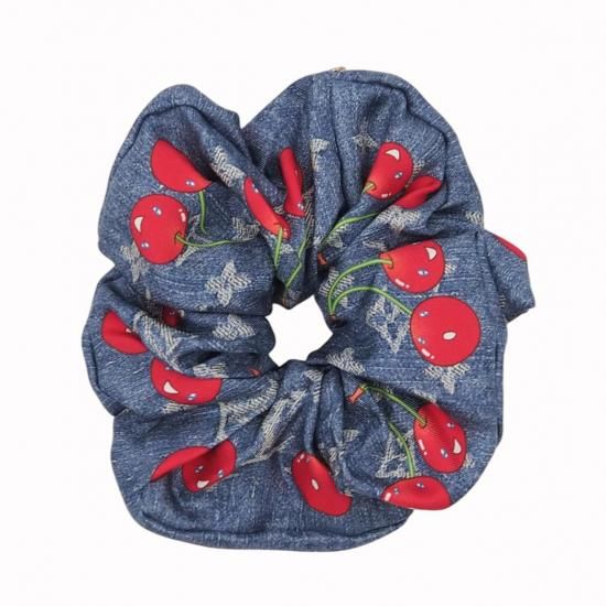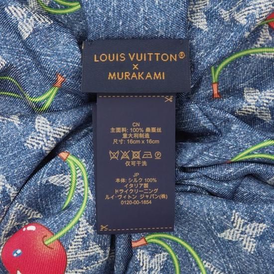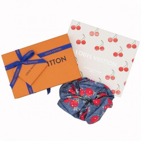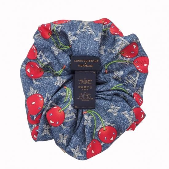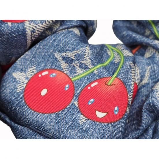 【N 新品/未使用品】LOUIS VUITTON ルイ ヴィトン LV×TM シュシュ・モノグラム デニム・チェリー ヘアアクセサリー ヘアゴム シルク 村上隆 ゴールド金具 M96595 イタリア製