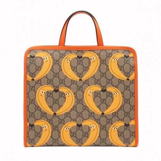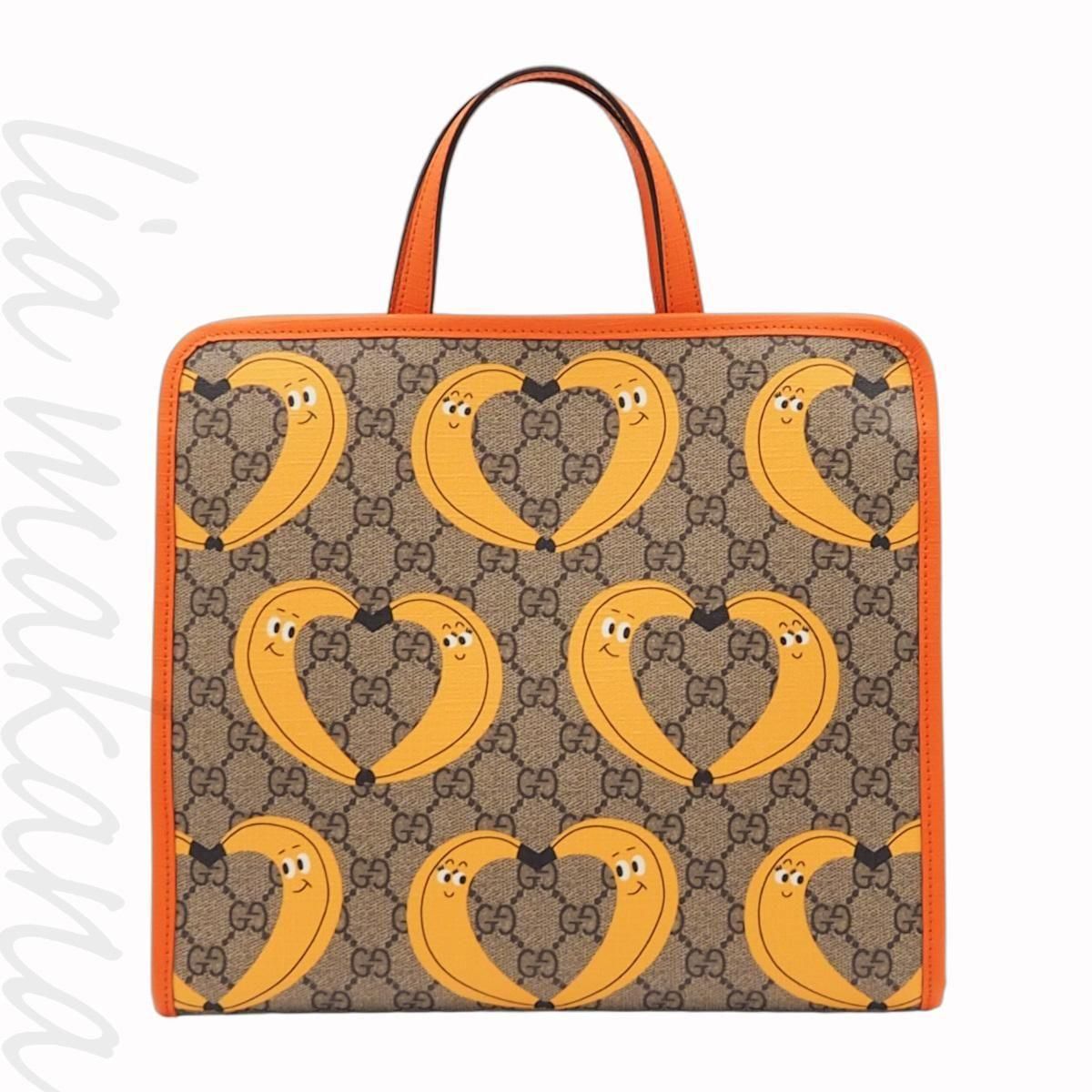 グッチならではの遊び心をくすぐる子供向けデザインや、大人用よりコンパクトなコレクション「GUCCI KIDS/チルドレンズ」。GGスプリームキャンバスで仕立て、表情豊かなバナナプリントでアクセントを効かせたアイテムでございます。