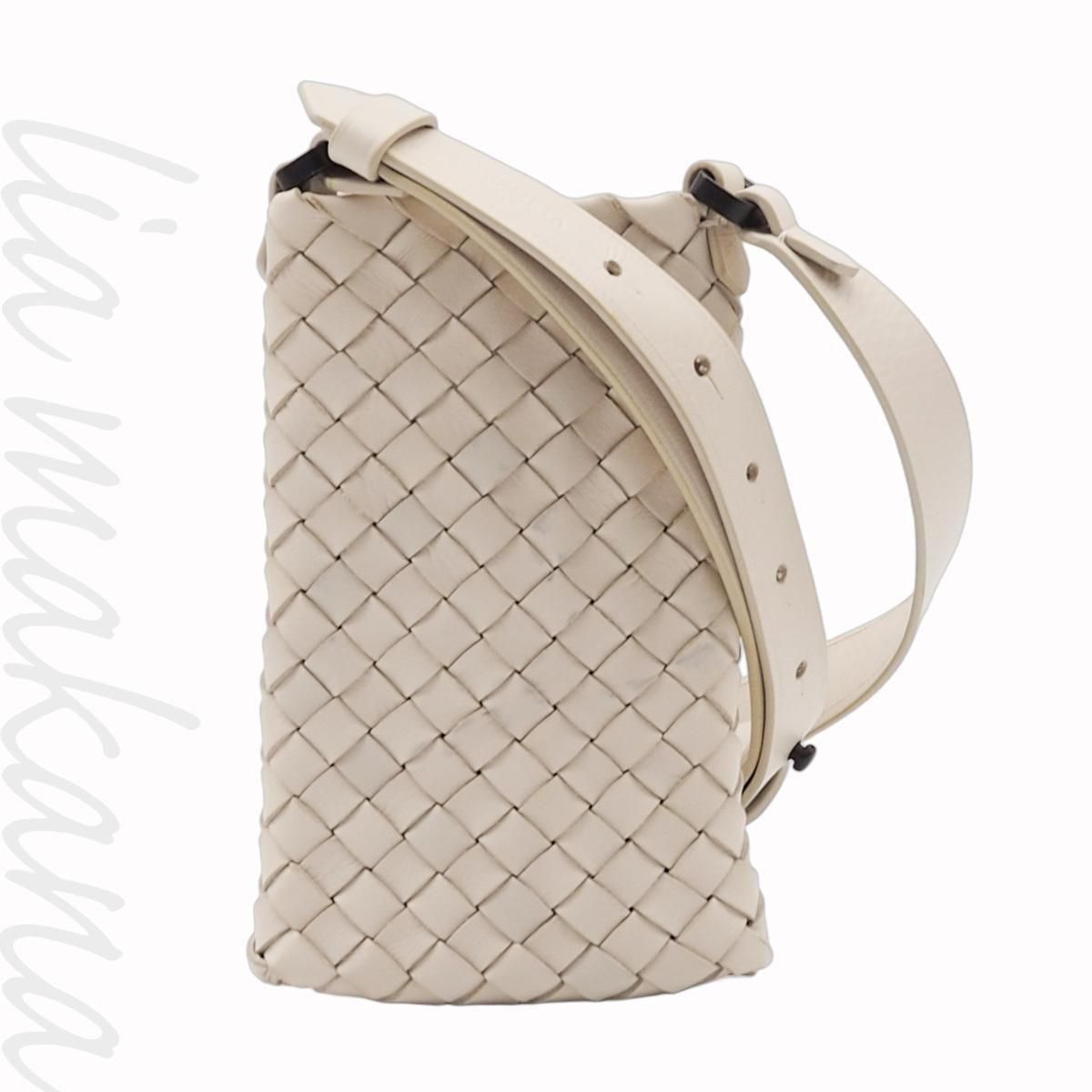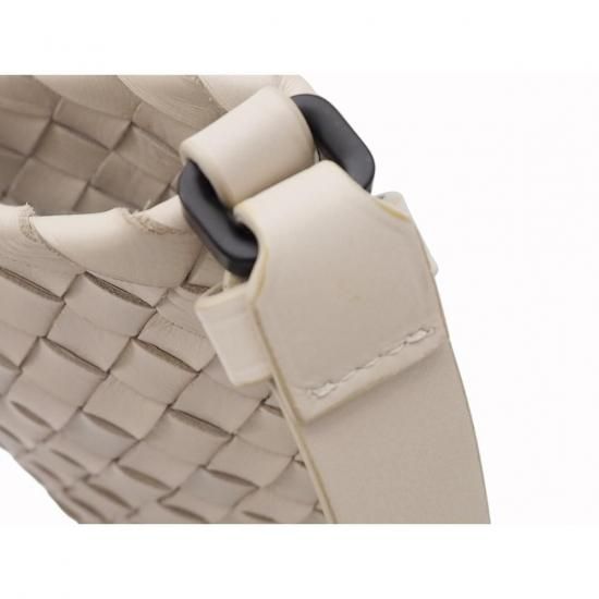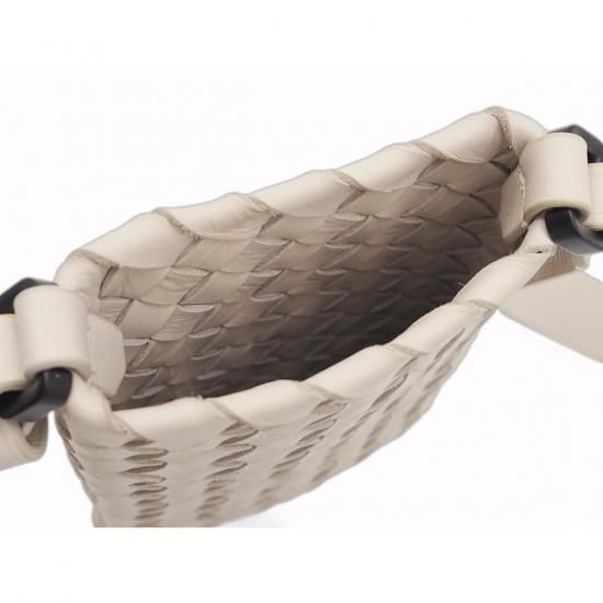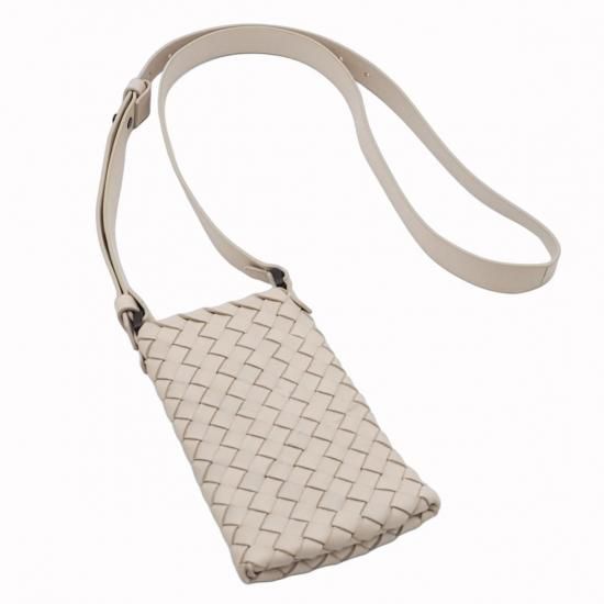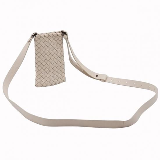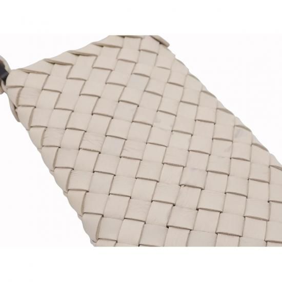【中古】BOTTEGA VENETA ボッテガ ヴェネタ イントレチャート フォンポーチ スマホポーチ スマートフォンケース ミニバッグ ショルダーバッグ 斜め掛け アイボリー系 レザー ブラック金具