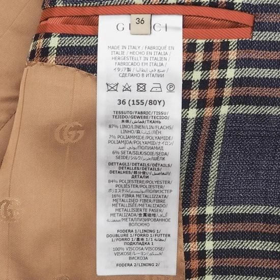【中古】GUCCI グッチ ジャケット アウター シングルブレスト カジュアル ウィメンズ チェック ネイビー ライトピンク アイボリー マルチカラー #36 イタリア製 696818 ZAI20