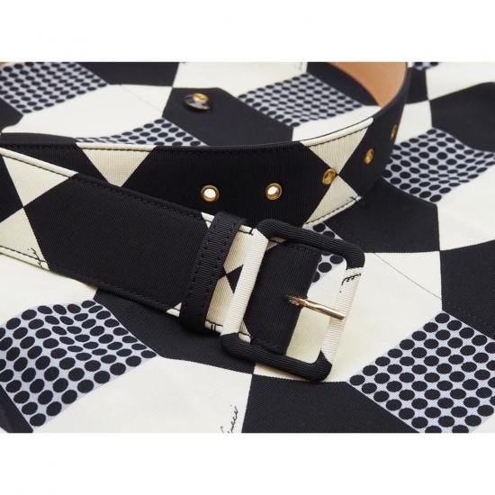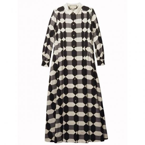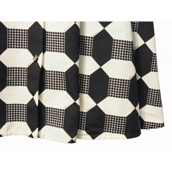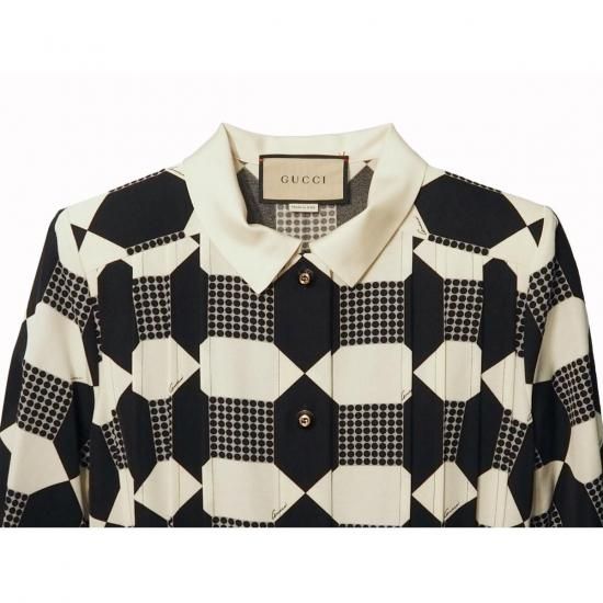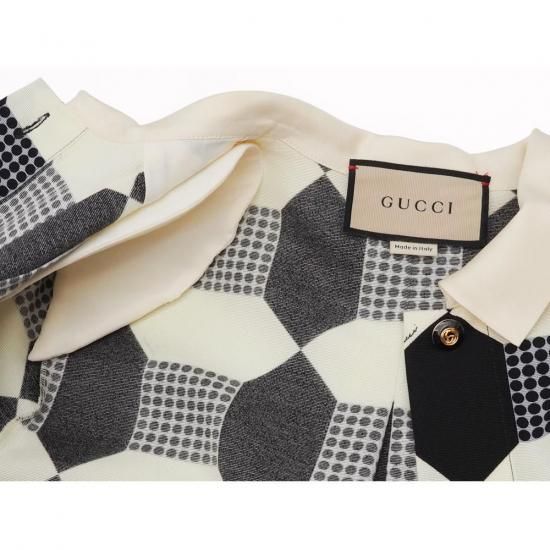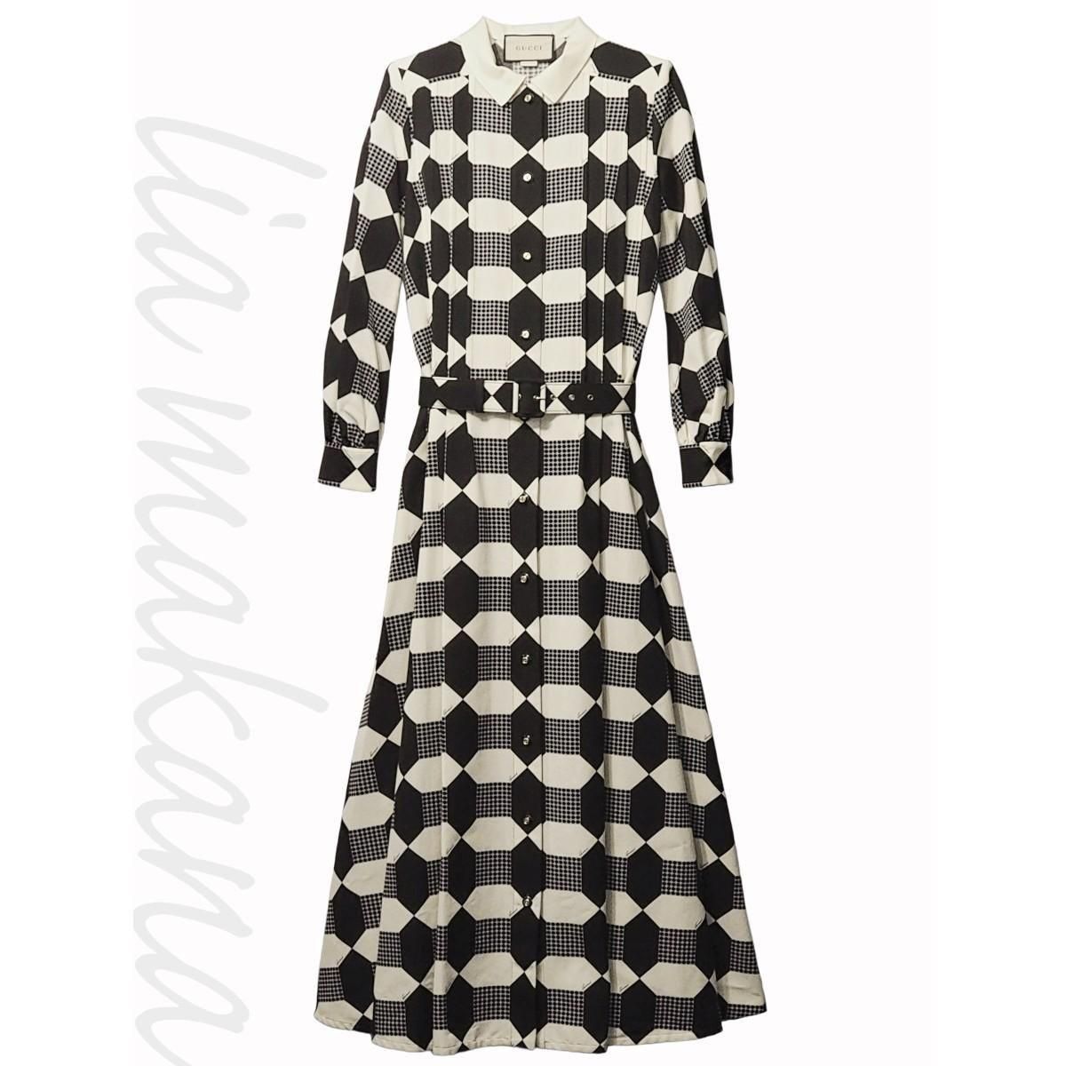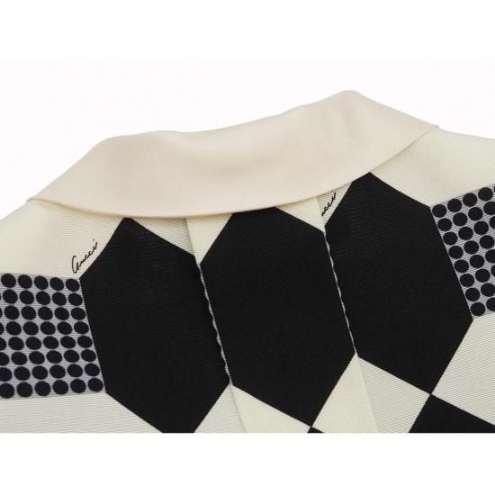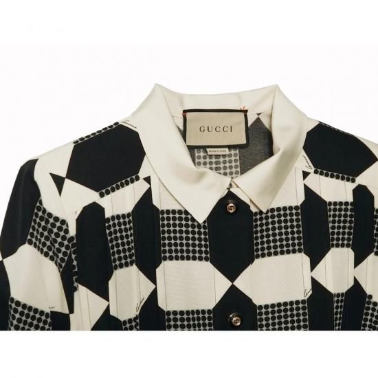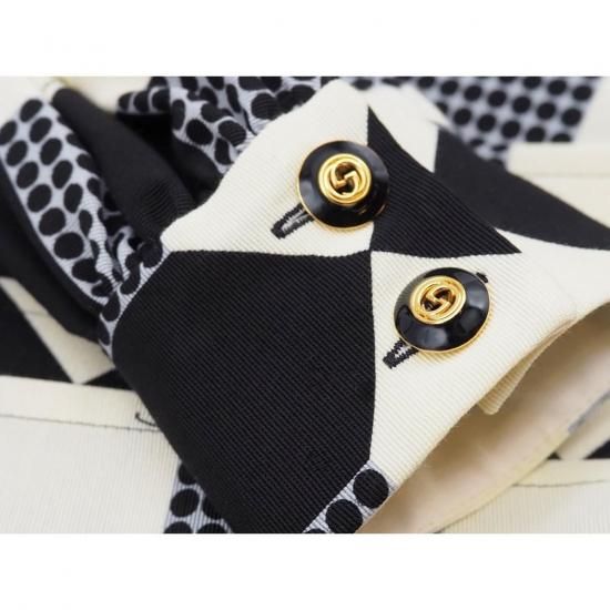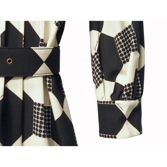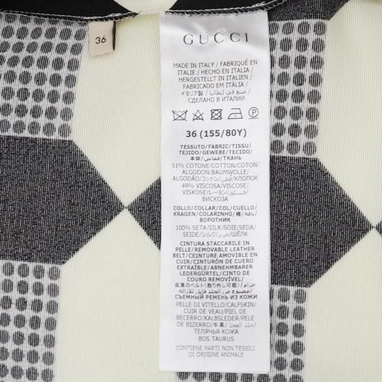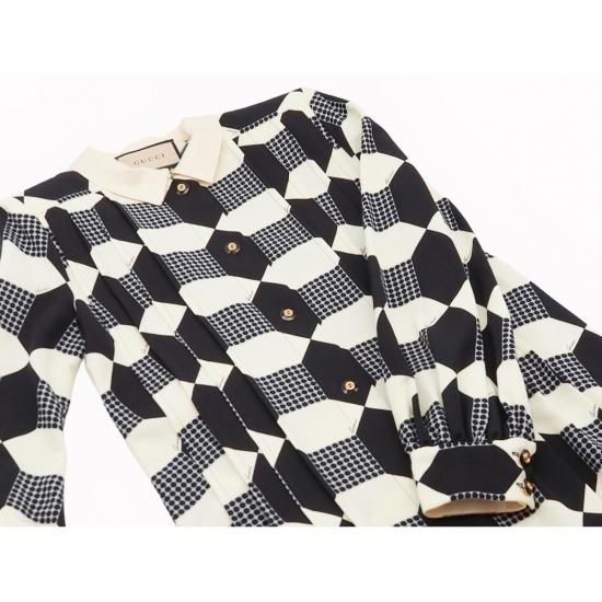 【中古】GUCCI グッチ オプティカル ドレス シャツドレス ワンピース 長袖 幾何学模様 ブラック 黒 アイボリー ベルト付き #36 イタリア製 664317 Z8AWG